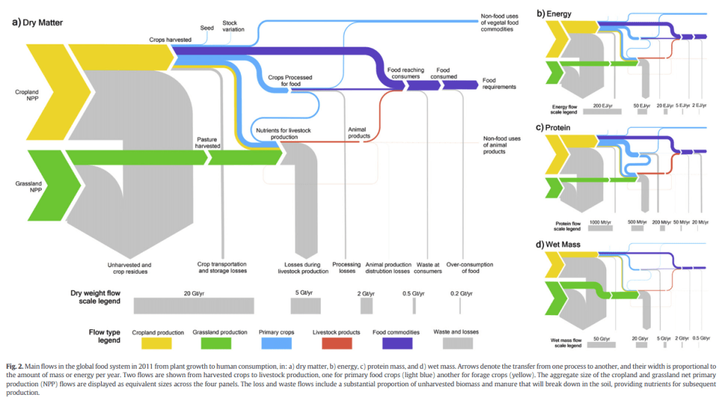 Wie ist es dann mit Konsument*innen? Wenn wir alle eine umweltfreundliche Landwirtschaft wollen – und das deklarieren wir zumindest in großer Mehrheit –, was hindert uns daran, entsprechend anders zu konsumieren und die Mehrkosten umweltfreundlicher Produktion (wörtlich) in Kauf zu nehmen? Da ich mich diesem Problem an anderer Stelle (hier und hier) bereits ausführlicher gewidmet habe, sei nur gesagt: auch wenn ich die Kritik an Konsument*innen zum Teil für berechtigt halte, ist die Problematik hier doch wesentlich komplizierter als „Alles Heuchler, die bessere Umwelt umsonst haben wollen!“ Diese Komplexität verbietet es, Konsument*innen zu alleinigen Verantwortlichen zu machen. Nichtsdestotrotz dürfte es schwierig (wenn nicht gar unmöglich) sein, die von der Landwirtschaft ausgehenden Umweltprobleme zu lösen, wenn wir alle unsere Konsummuster nicht verändern. Abgesehen von der starken Preisorientierung sind unsere Konsumgewohnheiten zum Beispiel deswegen mit einer umweltfreundlichen Produktion nicht vereinbar, als sie (insbesondere die Menge der konsumierten tierischen Produkte) zu große Flächenbedarfe aufweisen. Und auch Verschwendung geht zum großen Teil auf die Kappe der Konsument*innen (s. Abbildung).