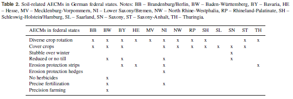 Gemeinsam mit einigen BonaRes-Kolleg:innen haben wir uns vor einer Weile die Rolle des Bodenschutzes in der deutschen Agrarumweltpolitik angeschaut – damals noch bezogen auf die laufende GAP-Periode 2013–2020+. Die Analyse ergab, dass das Instrumentarium der GAP nicht ausreichend ist, die vielen öffentlichen Güter adäquat zu fördern, die von Agrarböden bereitgestellt werden. Die Cross-Compliance-Regelungen, und dort insbesondere die Regelungen des Guten Landwirtschaftlichen und Ökologischen Zustands, GLÖZ, enthalten zwar einige bodenschutzrelevante Aspekte, insbesondere hinsichtlich des Erosiosschutzes. Doch die Vorgaben bleiben minimalistisch und die Umsetzung der GLÖZ durch die Bundesländer lässt zu wünschen übrig (konkret bezogen auf den Erosionsschutz s. hier). Ein größeres Potenzial haben die Agrarumwelt- und Klimamaßnahmen (AUKM). Doch auch hier ist der Bodenschutz stark unterrepräsentiert und die meisten Bundesländer fördern nur wenige bodenbezogene AUKM (s. Abbildungen).