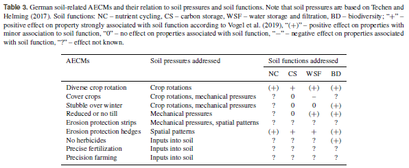 Drei Instrumente sind für den Bodenschutz innerhalb der GAP besonders relevant: die Konditionalität (insbesondere die GLÖZ-Regelungen), die neuen Ökoregelungen (Eco-Schemes) sowie die AUKM. Bei der Konditionalität gibt es hinsichtlich des Bodenschutzes keine wesentlichen Änderungen gegenüber der vorherigen GAP-Periode – die GLÖZ 5, 6 und 7 legen minimale Regeln für die Bodenbewirtschaftung fest (Erosionsvorbeugung, Mindestbodenbedeckung im Winter, jährlicher Fruchtwechsel). Im Rahmen des neu hinzugekommenen GLÖZ 8 werden 4% nichtproduktiver Flächen (bspw. Brachen oder Hecken) vorgeschrieben, die auch für den Boden positive Auswirkungen haben könnten. Diese Regelung ist auch sehr schnell unter Beschuss gekommen, zuletzt noch stärker aufgrund der Auswirkungen des Ukraine-Krieges (dazu s. den sehr guten Beitrag von Sebastian Lakner). Man darf gespannt bleiben, wie sich die Debatte entwickeln wird, falls gemäß der neuen Biodiversitäts-Strategie der EU bald tatsächlich 10% nichtproduktive Flächen gefordert werden…