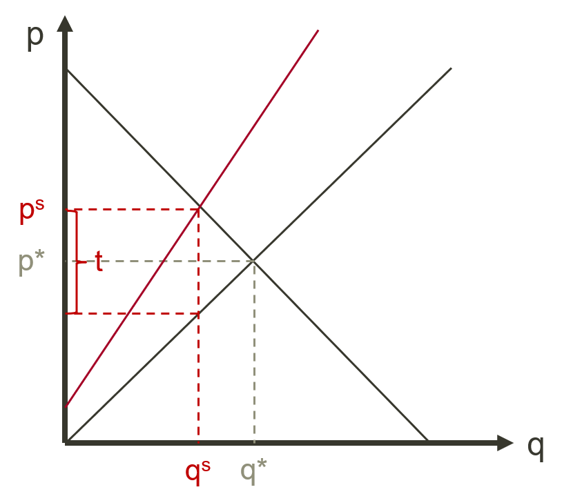In vermutlich jeder Einführungsvorlesung in Umweltökonomik kommt die Pigou-Steuer vor (s. Abbildung 1) – das klassische Mittel der Internalisierung von (negativen) Externalitäten. Negative Externalitäten sind von Marktakteuren nicht berücksichtigte „Nebenwirkungen“ ihrer wirtschaftlichen Aktivitäten, die negative Auswirkungen auf Dritte haben – in unserem Kontext wären das z. B. die Nitrat-Auswaschung in Gewässer, Treibhausgasemissionen oder das Verschwinden von Habitaten für Wildtiere und -pflanzen. Der Zweck der Pigou-Steuer ist es, diese negativen Externalitäten bzw. die damit einhergehenden gesellschaftlichen Kosten „einzupreisen“. Die Suche nach „wahren Preisen“ folgt in etwa derselben Logik.